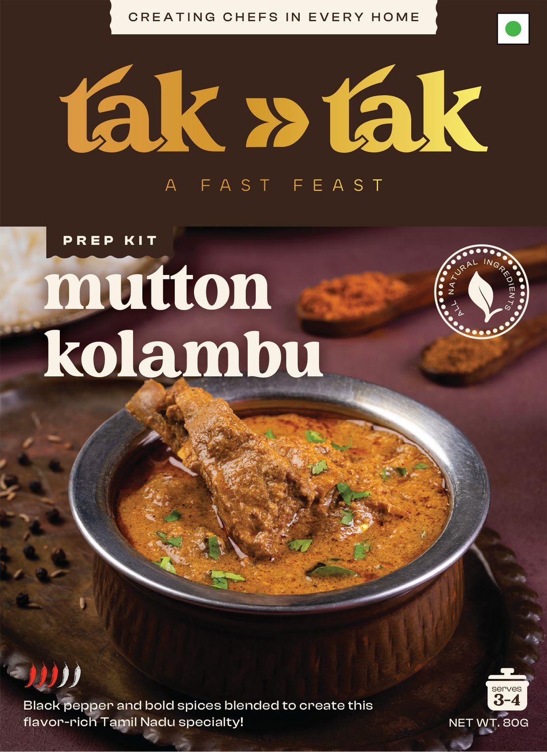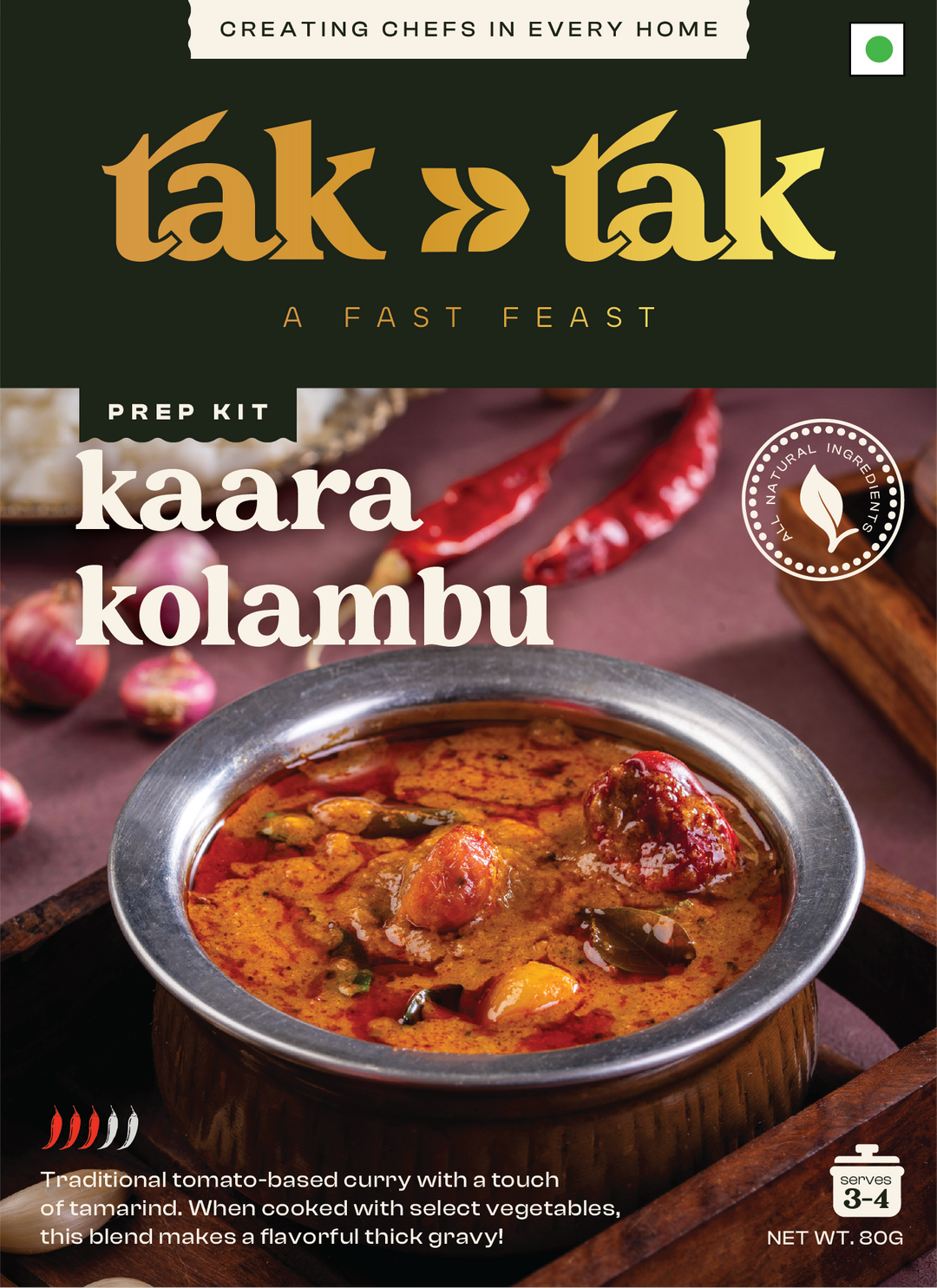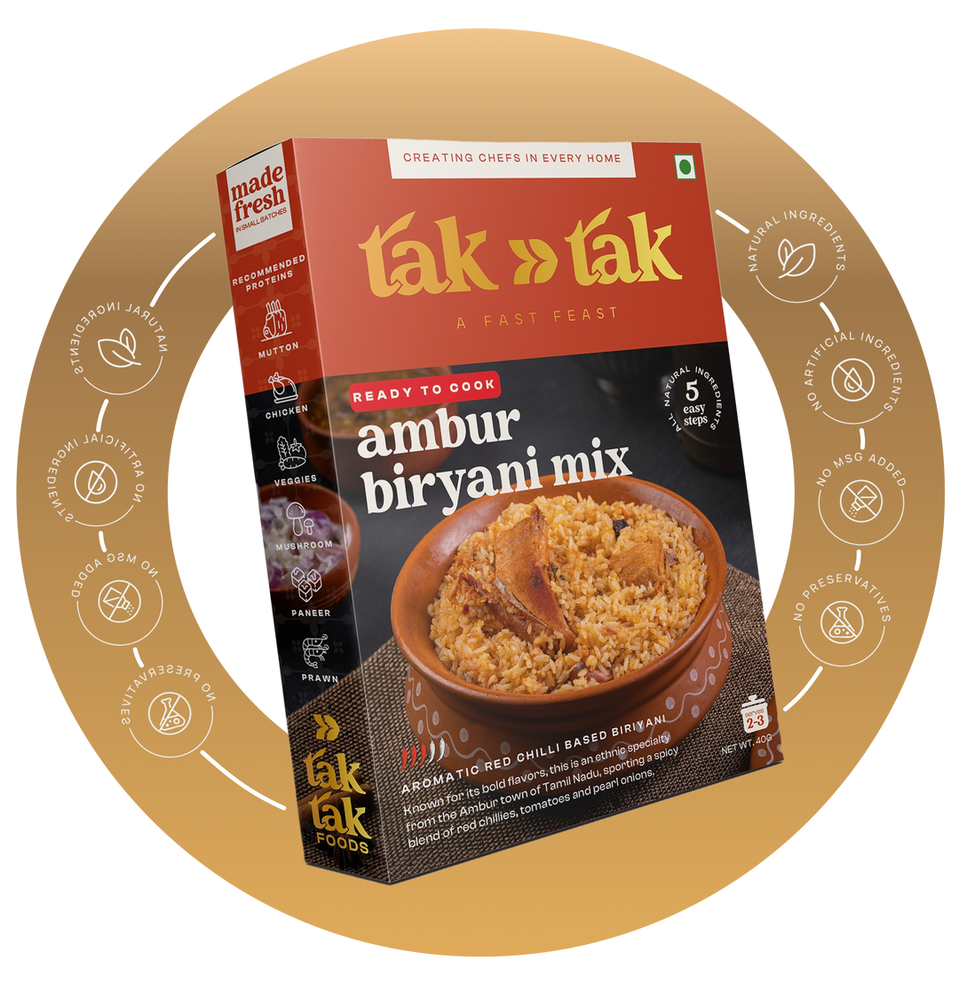 Tak Tak isn’t your typical masala powder—it's a thoughtfully curated blend of spices, seasonings, and fresh produce. From onions and tomatoes to ginger, garlic, chillies, and curry leaves, each box has everything you need to cook up a full Indian dish. Made from fresh, raw, all natural ingredients— handpicked straight from local farms. This isn’t some pre-cooked paste pretending to be homemade. With our freeze-dried mix, you get everything in its raw, natural state - NEVER COOKED BEFORE! Unlike traditional pastes, tak tak puts you in the chef’s seat—you're the first to cook it all.