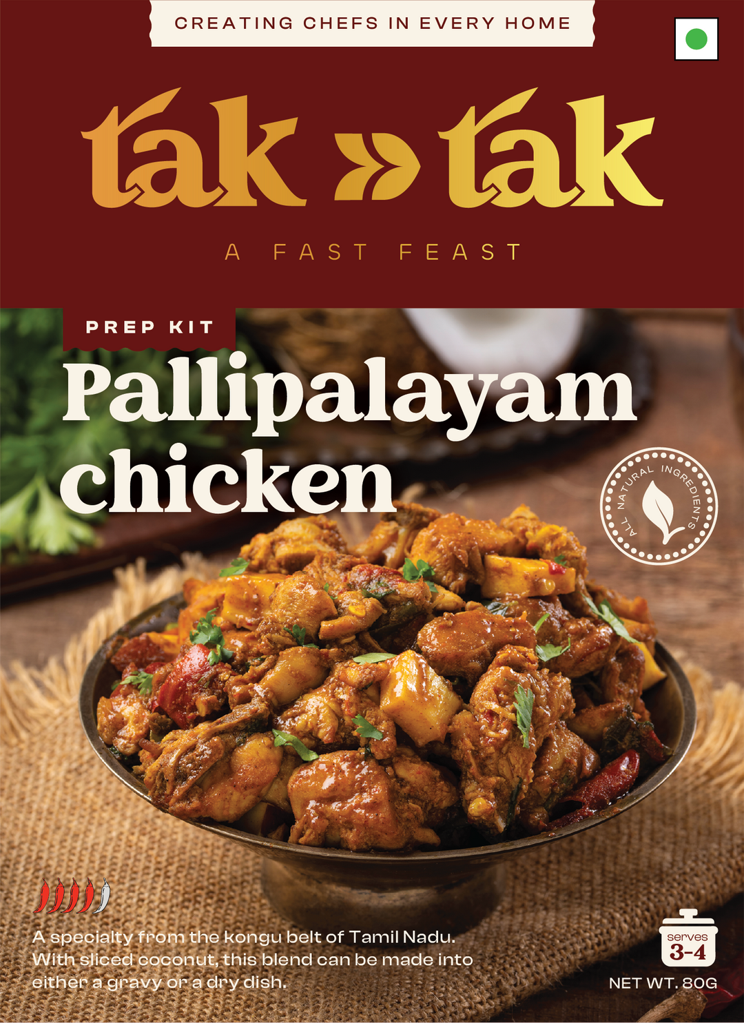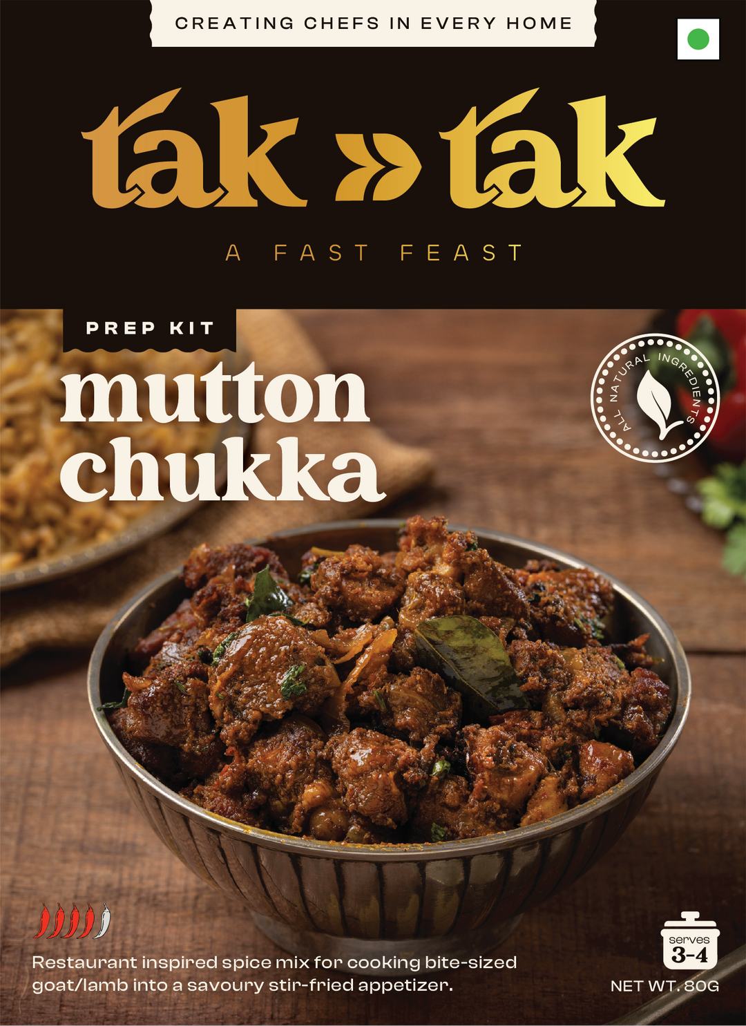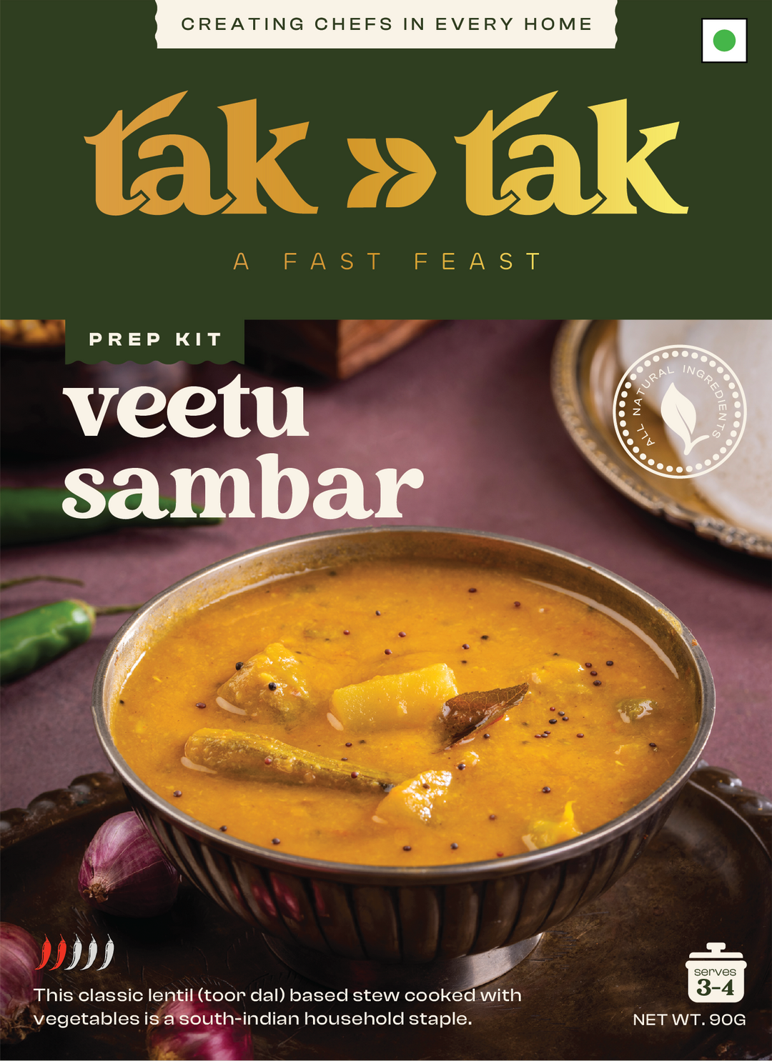 Tak Tak isn’t your typical masala powder—it's a thoughtfully curated blend of spices, seasonings, and fresh produce. From onions and tomatoes to ginger, garlic, chillies, and curry leaves, each box has everything you need to cook up a full Indian dish. Made from fresh, raw, all natural ingredients— handpicked straight from local farms. This isn’t some pre-cooked paste pretending to be homemade. With our freeze-dried mix, you get everything in its raw, natural state - NEVER COOKED BEFORE! Unlike traditional pastes, tak tak puts you in the chef’s seat—you're the first to cook it all.